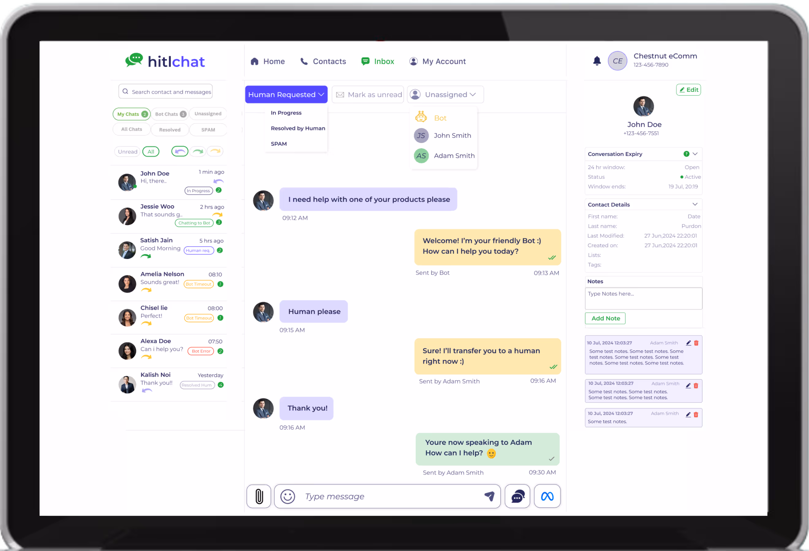 Respond to customers using a collaborative team inbox. Respond to your broadcast campaigns, send meta templates, intercept your chatbot's conversations.